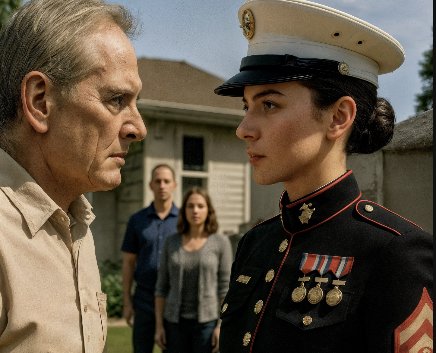 Ich erzähle es nicht, um Wunden oder Härte zur Schau zu stellen. Ich erzähle es, weil es wahr ist: Ein Mädchen wurde verjagt, baute sich ein Leben auf, und Jahre später musste der Mann, der sie hinauswarf, der Person antworten, zu der sie geworden war. Als mein Vater mir ins Gesicht sah — der General Morgan — traf er nicht nur den Rang. Er traf Jahre geduldiger Arbeit, eine Lebensmittelbank, die Nachbarn nährte, und eine Enkelin, die zuhört. Er sagte: „Ich irrte mich“ und meinte es wirklich.